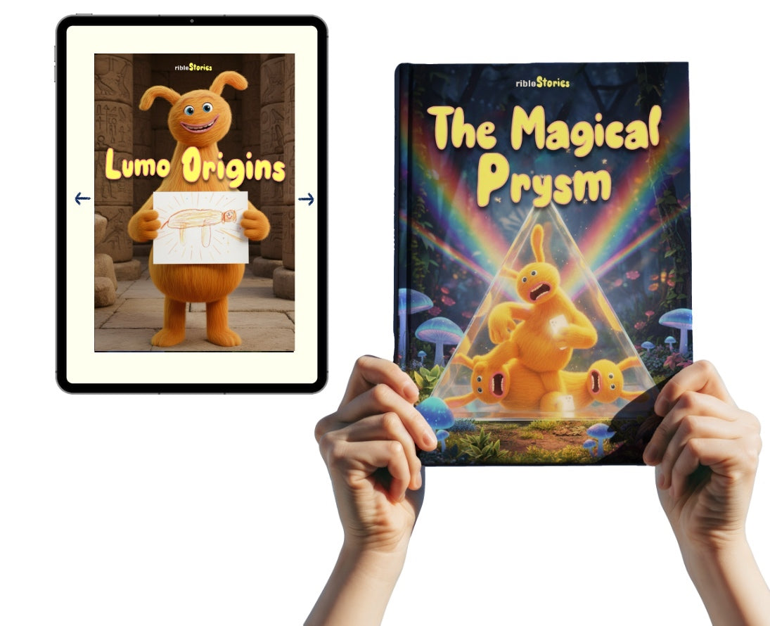 You'll receive immediately the digital version of Lumo Origins Story while you wait for the personalized physical book "The Magical Prysm".