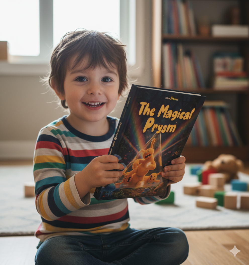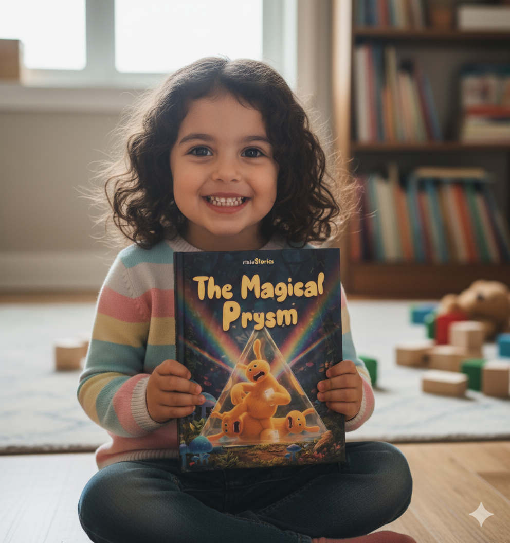 You'll receive immediately the digital version of Lumo Origins Story while you wait for the personalized physical book "The Magical Prysm".
